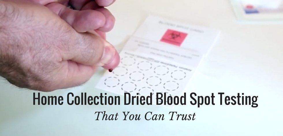 Dried blood spot is a form of collection where patients place blood drops on a filter card after a finger prick with a lancet. Once dry, blood spot cards are extremely stable for shipment and storage, and the dried blood format offers excellent correlation with serum tests.